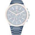 Dit Tommy Hilfiger horlogebandje is gemaakt van roestvrij staal en wordt aan het horloge bevestigd door middel van stalen pennen. De band heeft een breedte van 21 mm en wordt gesloten door middel van een vouwsluiting met drukknoppen. De band heeft geen rechte aanzet wat betekent dat deze band alleen geschikt is voor de horloges die hieronder worden vermeld.