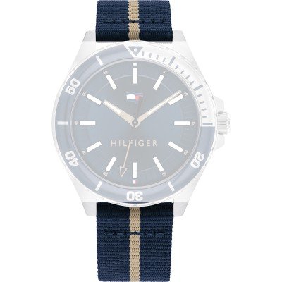 Dit Tommy Hilfiger horlogebandje is gemaakt van textiel en wordt aan het horloge bevestigd door middel van bandpennen. De band heeft een breedte van 20 mm en wordt gesloten door middel van een gesp. De band heeft een rechte aanzet wat betekent dat deze band geschikt is voor alle Tommy Hilfiger horloges met een rechte aanzet.