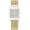 Dit Tommy Hilfiger horlogebandje is gemaakt van roestvrij staal en wordt aan het horloge bevestigd door middel van bandpennen. De band heeft een breedte van 17 mm en wordt gesloten door middel van een milanese sluiting. De band heeft geen rechte aanzet wat betekent dat deze band alleen geschikt is voor de horloges die hieronder worden vermeld.