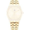 Dit Tommy Hilfiger horlogebandje is gemaakt van roestvrij staal en wordt aan het horloge bevestigd door middel van stalen pennen. De band heeft een breedte van 19 mm en wordt gesloten door middel van een vouwsluiting met drukknoppen. De band heeft geen rechte aanzet wat betekent dat deze band alleen geschikt is voor de horloges die hieronder worden vermeld.