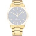 Dit Tommy Hilfiger horlogebandje is gemaakt van roestvrij staal en wordt aan het horloge bevestigd door middel van stalen pennen. De band heeft een breedte van 22 mm en wordt gesloten door middel van een vouwsluiting met drukknoppen. De band heeft geen rechte aanzet wat betekent dat deze band alleen geschikt is voor de horloges die hieronder worden vermeld.