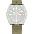 Dit Tommy Hilfiger horlogebandje is gemaakt van textiel en wordt aan het horloge bevestigd door middel van bandpennen. De band heeft een breedte van 21 mm en wordt gesloten door middel van een gesp. De band heeft een rechte aanzet wat betekent dat deze band geschikt is voor alle Tommy Hilfiger horloges met een rechte aanzet.