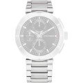 Dit Tommy Hilfiger horlogebandje is gemaakt van roestvrij staal en wordt aan het horloge bevestigd door middel van stalen pennen. De band heeft een breedte van 24 mm en wordt gesloten door middel van een vouwsluiting met drukknoppen. De band heeft geen rechte aanzet wat betekent dat deze band alleen geschikt is voor de horloges die hieronder worden vermeld.