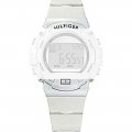 Dit Tommy Hilfiger horlogebandje is gemaakt van kunststof en wordt aan het horloge bevestigd door middel van bandpennen. De band heeft een breedte van 25 mm en wordt gesloten door middel van een gesp. De band heeft geen rechte aanzet wat betekent dat deze band alleen geschikt is voor de horloges die hieronder worden vermeld.