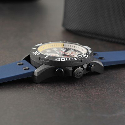Dit TW Steel horloge heeft een kast gemaakt van Carbon met een diameter van 44 mm en is voorzien van een Rubber band. In de kast bevindt zich een Seiko Instruments Inc. kwaliteitsuurwerk en is afgewerkt met Gehard mineraalglasglas.