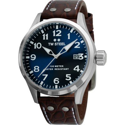 TW Steel herenhorloges zijn verkrijgbaar met een leren, metalen of siliconen horlogeband en zijn 5 ATM of 10 ATM waterdicht.
