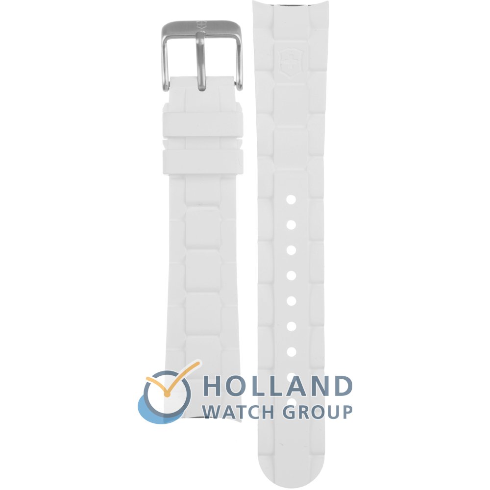 Dit Victorinox horlogebandje is gemaakt van siliconen en wordt aan het horloge bevestigd door middel van bandpennen. De band heeft een breedte van 18 mm en wordt gesloten door middel van een gesp. De band heeft geen rechte aanzet wat betekent dat deze band alleen geschikt is voor de horloges die hieronder worden vermeld.