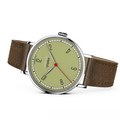 Dit Walter Gropius horloge heeft een kast gemaakt van Roestvrijstaal met een diameter van 38 mm en is voorzien van een leren band. In de kast bevindt zich een Miyota kwaliteitsuurwerk en is afgewerkt met Dubbel ontspiegeld saffierglasglas.