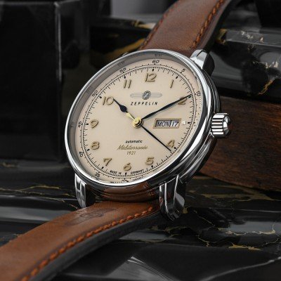 Dit Zeppelin horloge heeft een kast gemaakt van Roestvrijstaal met een diameter van 40 mm en is voorzien van een leren band. In de kast bevindt zich een Miyota kwaliteitsuurwerk en is afgewerkt met K1 Mineraalglas.
